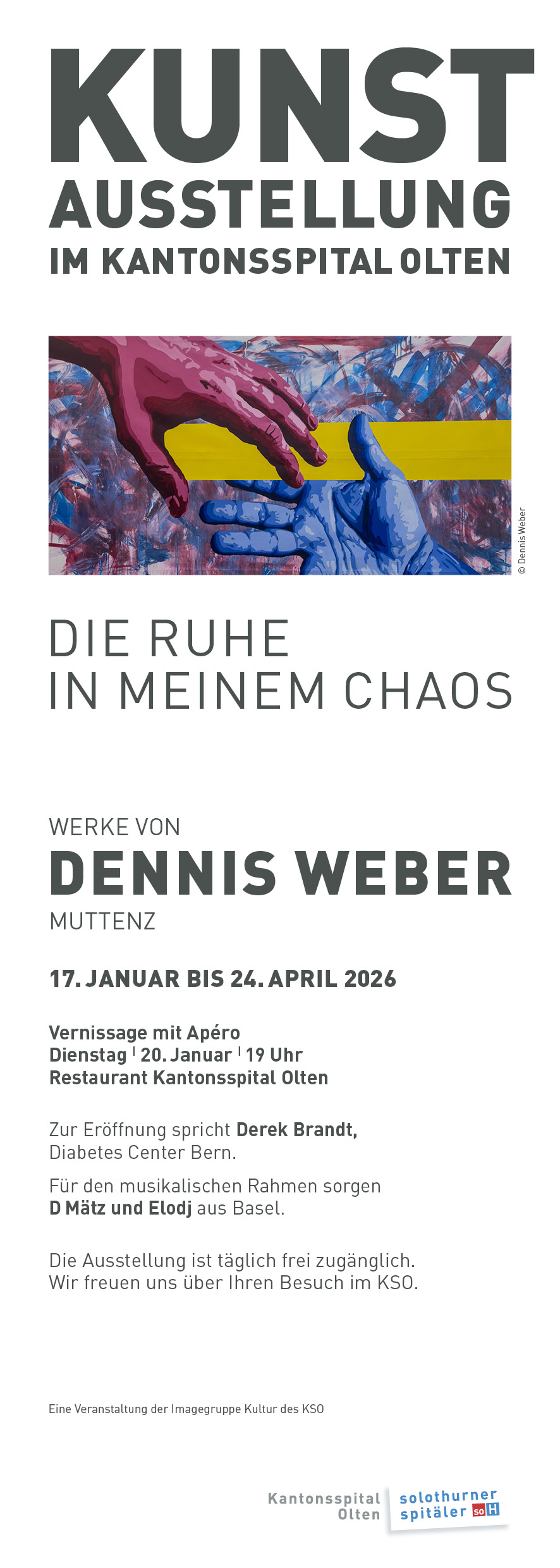 Die Vernissage mit Apéro findet statt am 12. Mai auf 19 Uhr im Restaurant vom Kantonsspital Olten